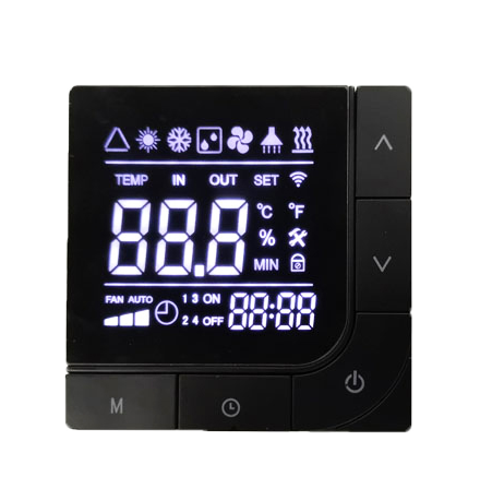 86盒线控显示器主要适配于泳池、家用、工程类热泵控制器,通过了EMC标准测试,是暖通热泵市场配件倍受青睐,特别适用于做出口的热泵厂家。